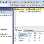 Во втором запросе SELECT мы использовали предложение WHERE с условием RUNS>20. Примечание. Запуски больше 20 не означает Запуски равны 20. В результате мы увидели всего две записи.